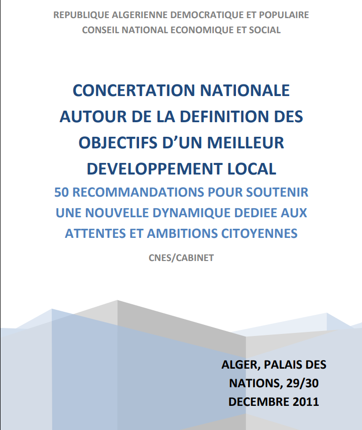 Concertation nationale autour de la définition des objectifs d’un meilleur développement local 50 recommandations pour soutenir une nouvelle dynamique dédiée aux attentes et ambitions citoyennes.